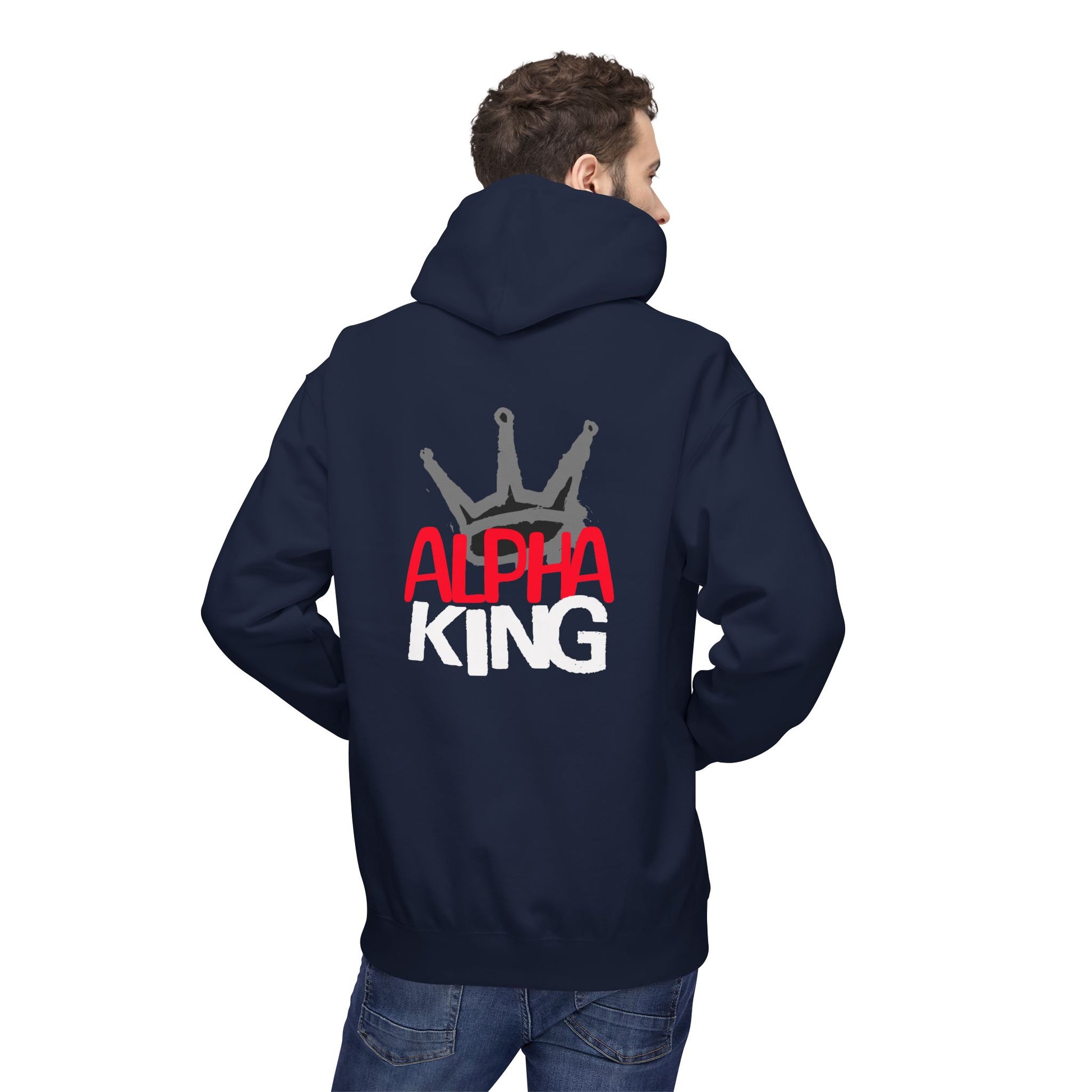 This midweight hoodie blends streetwise attitude with everyday comfort. The bold “ALPHA KING” graphic—painted in red and white beneath a hand-brushed crown—reads like a quiet proclamation on the back, while the clean front keeps the look wearable and low-key. Soft, substantial fleece and a two-piece jersey-lined hood hold their shape through cold commutes and late-night meetups. Dropped shoulders and a relaxed classic fit let you layer easily over tees or flannels. Thoughtful details—pouch pocket, tear-away label, and OEKO-TEX plus socially conscious manufacturing—give it a responsible backbone that matches its confident vibe. Wear it to shows, street sessions, or whenever you want an extra layer that speaks with attitude instead of noise. Product features - Two-piece jersey-lined hood for added warmth and structure - Relaxed fit with dropped shoulders for easy layering - Front pouch pocket for hand warmth and small storage - Medium-heavy 8.4 oz fleece: soft, durable, 80/20 cotton-poly blend - OEKO-TEX certified and produced in FLA & WRAP-partnered facilities Care instructions - Machine wash: cold (max 30C or 90F), gentle cycle - Non-chlorine: bleach as needed - Tumble dry: low heat - Iron, steam or dry: low heat - Do not dryclean